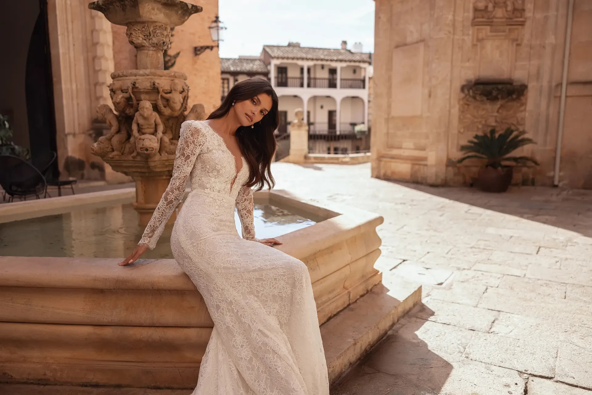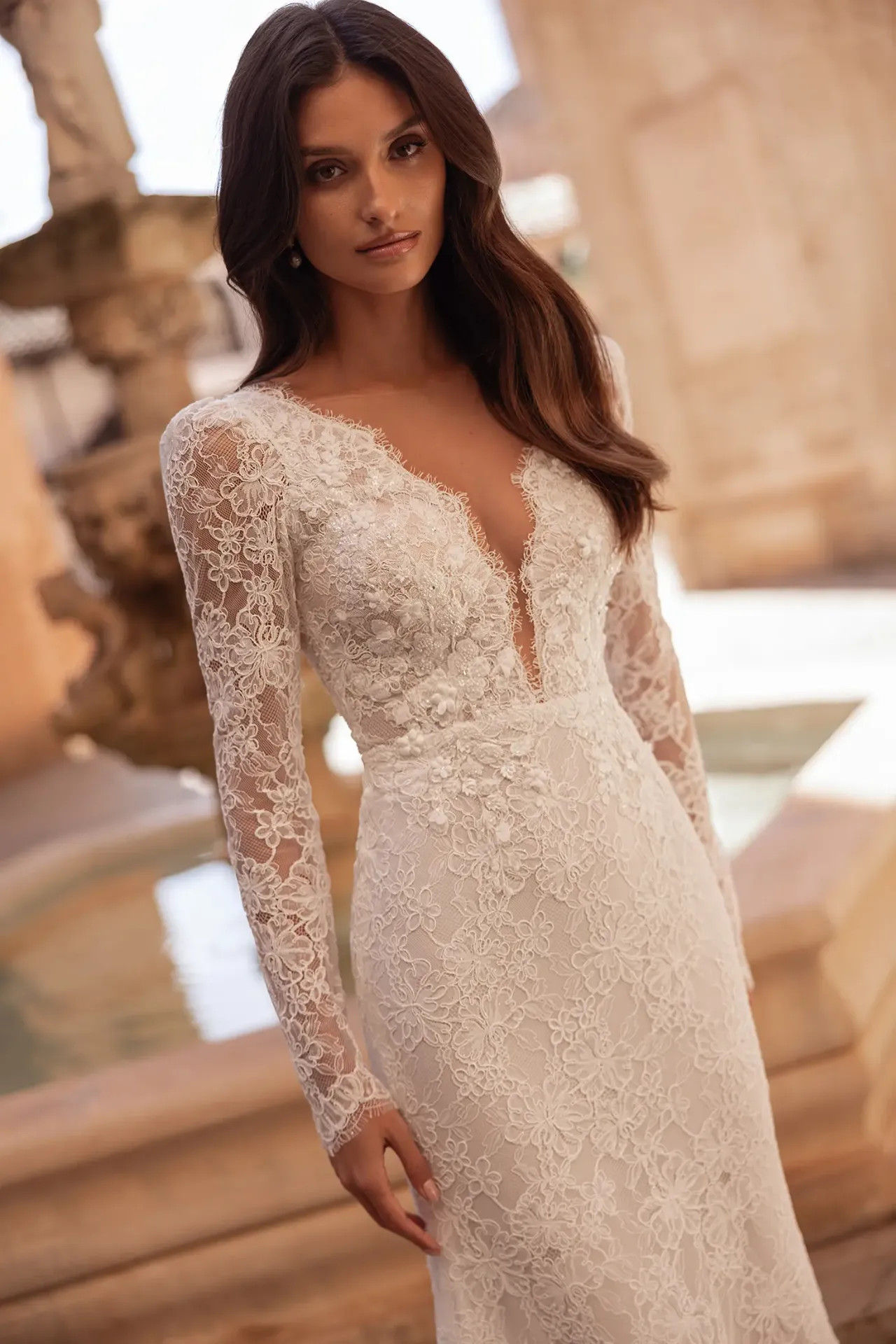 Stylist tipp: Az Agatha a tökéletes választás egy őszi vagy téli esküvőre, ahol a hosszú csipkeujjak nemcsak praktikusak, hanem rendkívül elegánsak is. A Holdfény Szalonban azért szeretjük ezt a modellt, mert a nemes Alençon csipke miatt szinte semmilyen kiegészítőt nem igényel – egy egyszerű fülbevalóval és egy klasszikus konttyal te leszel az elegancia szobra.