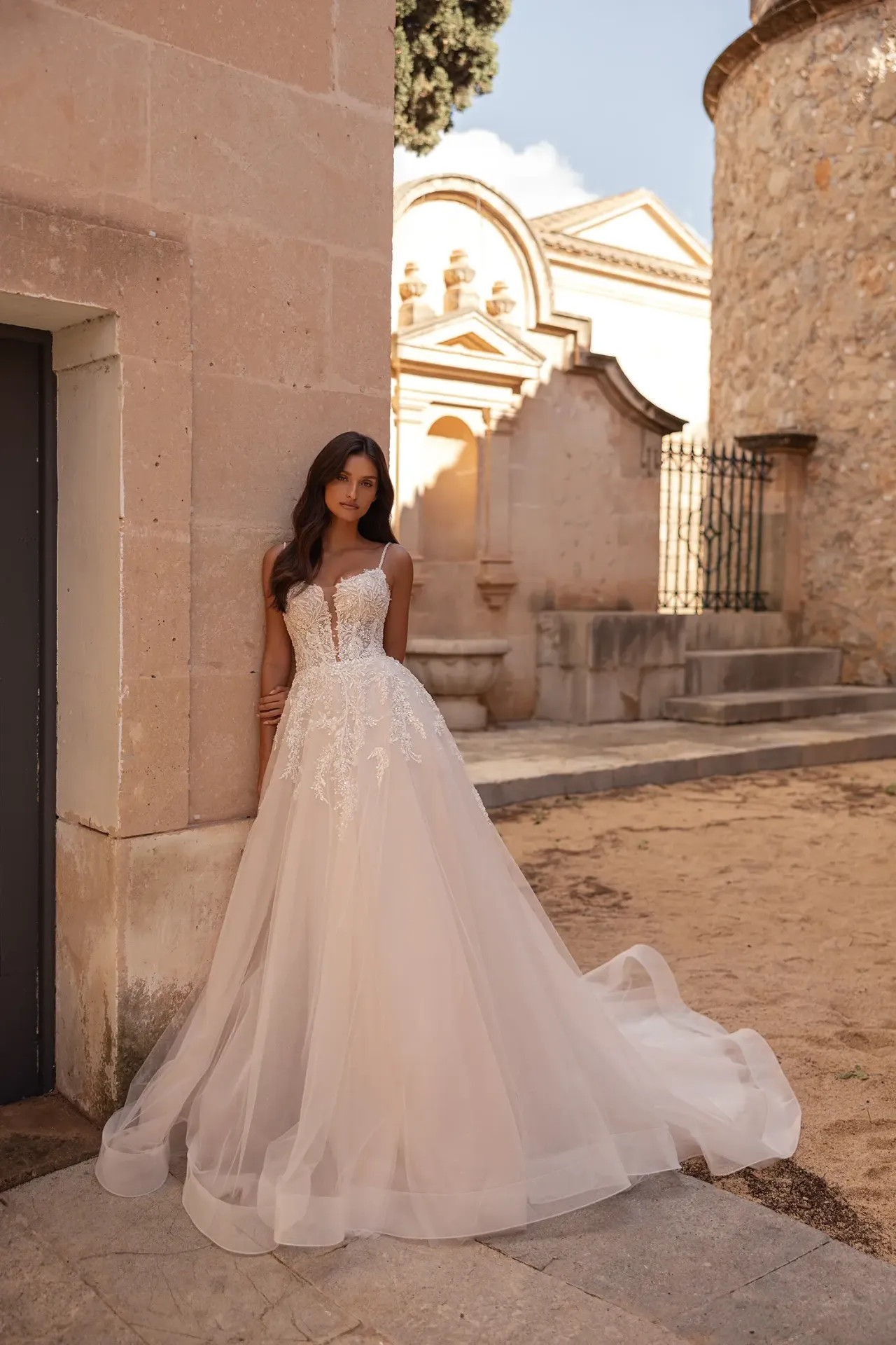 Stylist tipp: A Bronte a tökéletes választás, ha szereted a romantikus, "tündérszerű" stílust. A Holdfény Szalonban azért imádjuk, mert a ruha valóban súlytalannak érződik, így a fotózás és a hajnalig tartó tánc is kényelmes lesz benne. A mély dekoltázs és a vékony pántok miatt ez a modell gyönyörűen nyújtja a felsőtestet!
