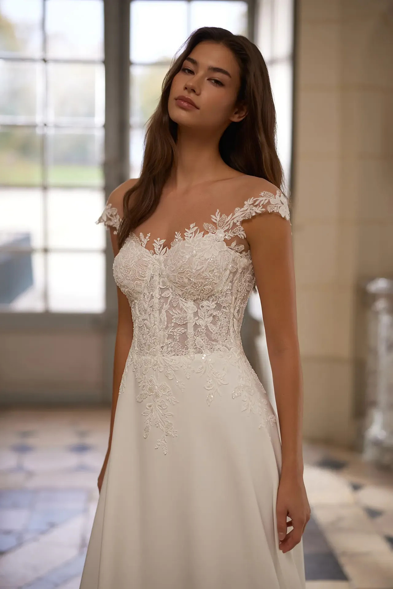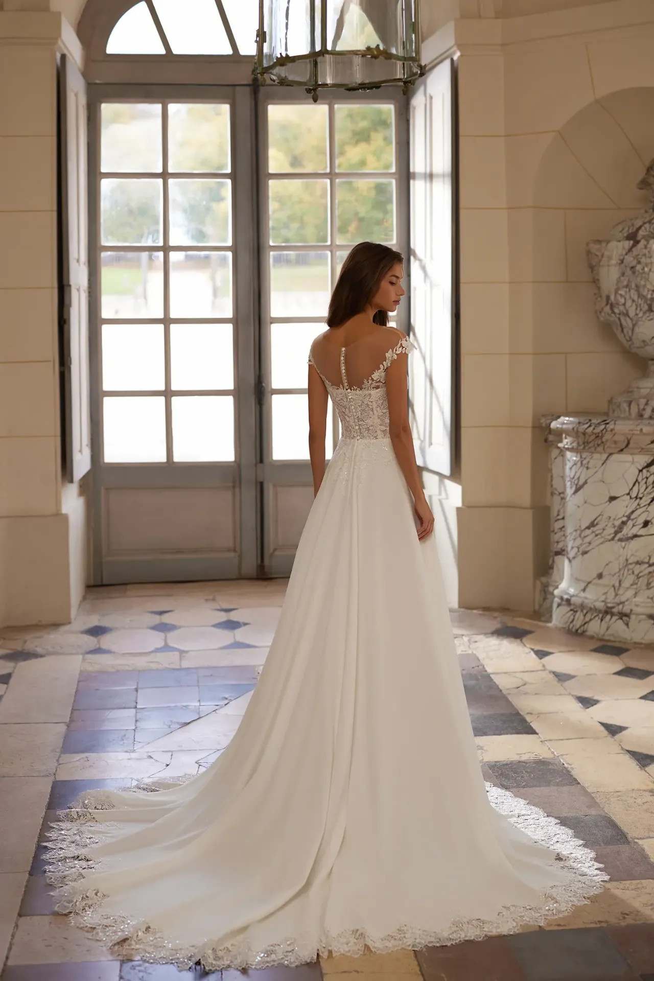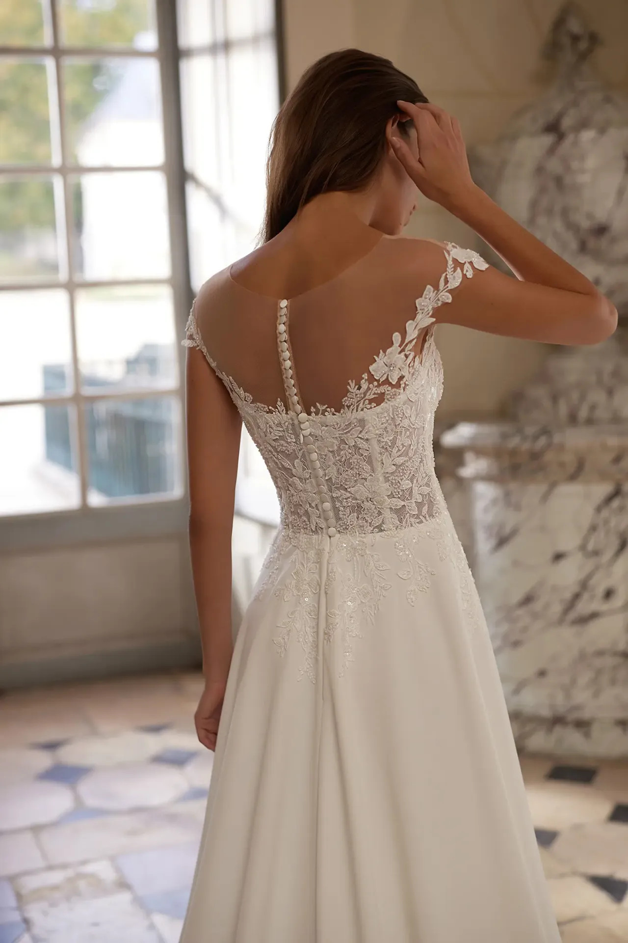 A Brunella ruha a bizonyíték arra, hogy nincs szükség túlzó díszítésekre a fenséges megjelenéshez. Ez a modell a finom részletek és a nemes anyagok tiszta harmóniájáról szól, megalkotva egy olyan stílust, amely egyszerre méltóságteljes és végtelenül kedves.