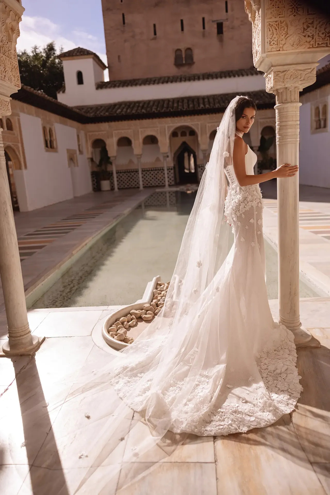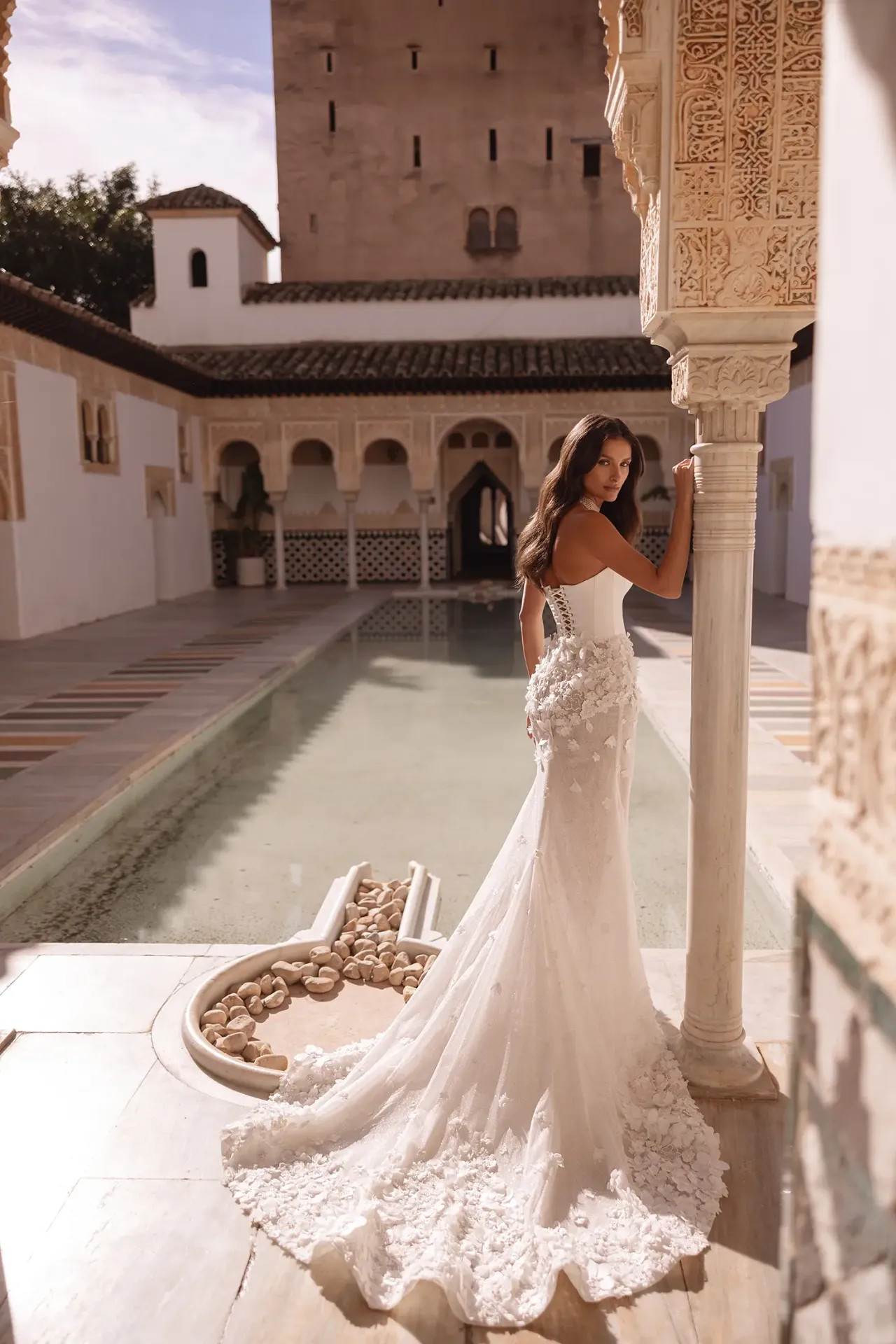 A Doriana ruha azoknak a menyasszonyoknak készült, akik szeretik a formabontó megoldásokat. Ez a modell mesterien játszik az ellentétekkel: a felsőrész építészeti tisztasága és a szoknya burjánzó, virágos díszítése egy olyan drámai, mégis kifinomult összhatást kelt, amely minden szögből rabul ejti a tekintetet.