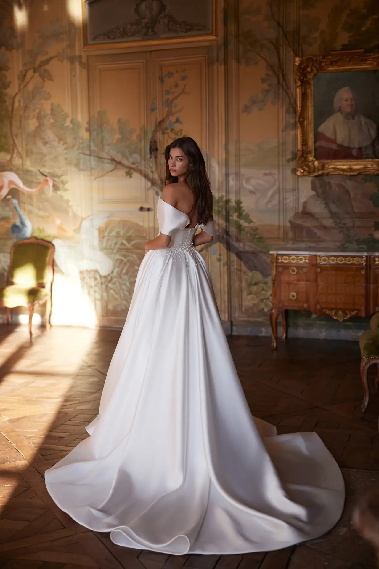 Stylist tipp: Az Elba a tökéletes választás, ha olyan ruhát keresel, amire 20 év múlva is büszkén nézel majd vissza az esküvői fotókon. A Holdfény Szalonban azért imádjuk, mert a mikádó selyem tartása miatt rendkívül fotogén, a gyöngyös díszítés pedig éppen annyi pluszt ad, amitől igazi „couture” darabbá válik.