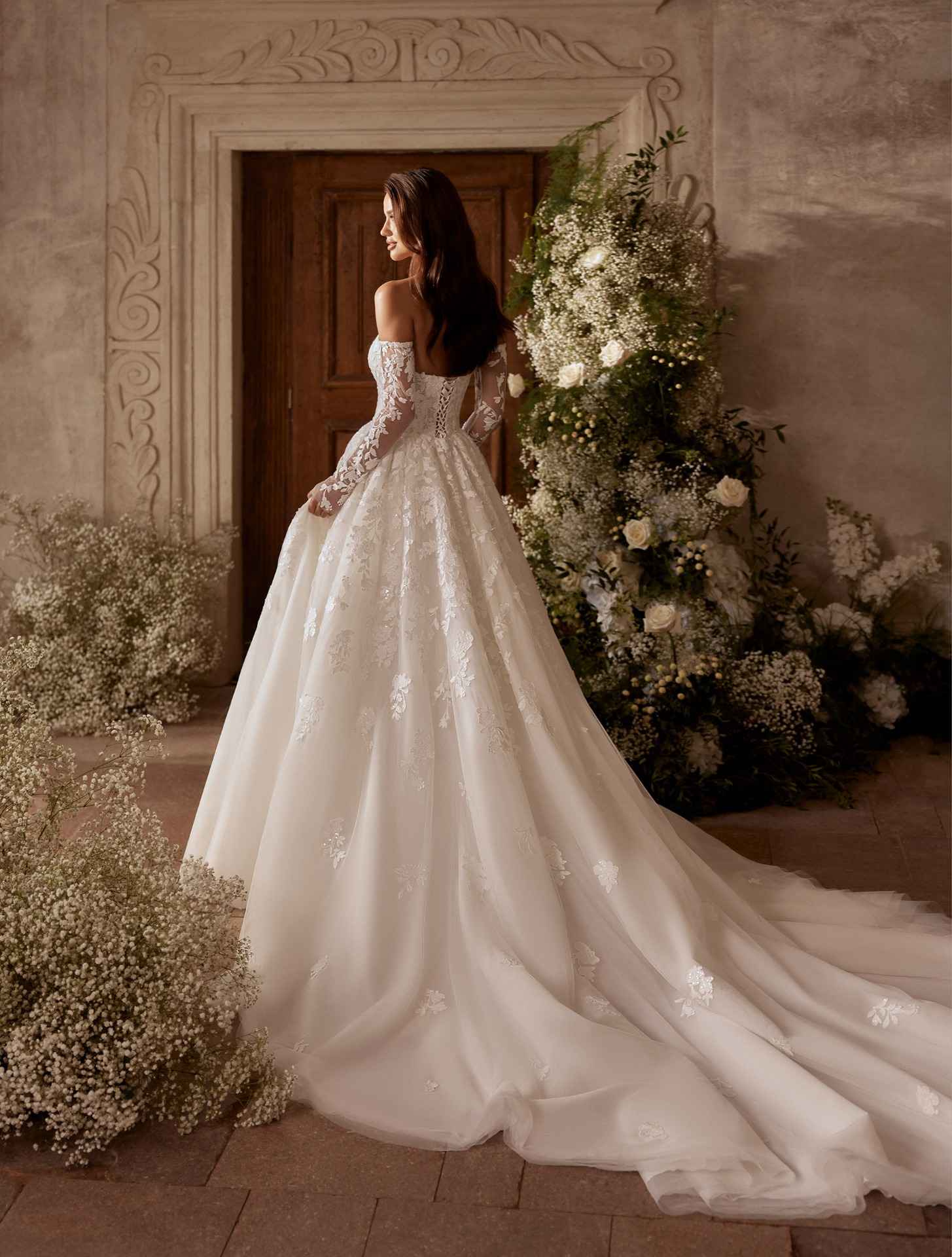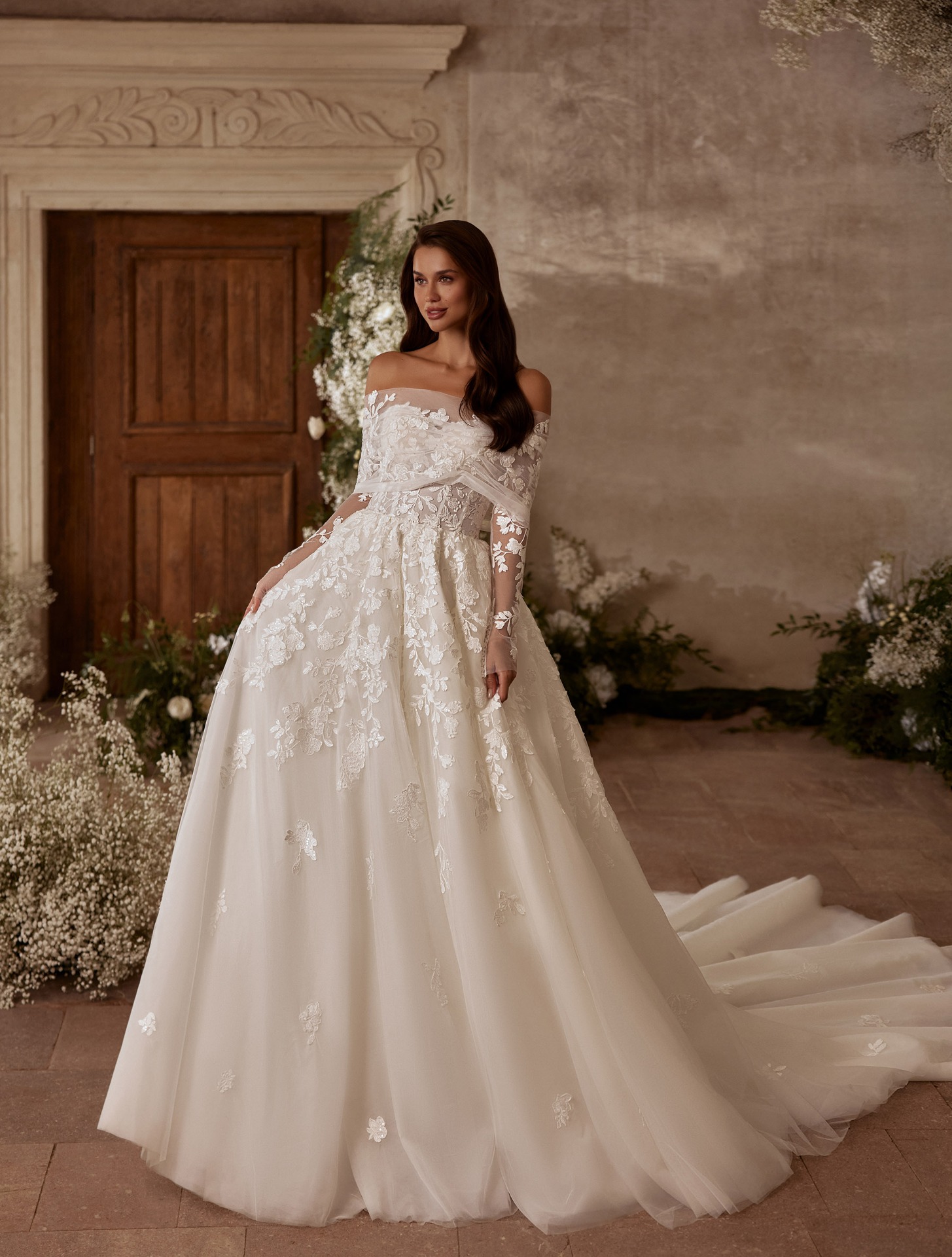 A teljesen kézzel készült csipkedíszítés és a hosszú uszály a klasszikus menyasszonyi stílust idézi, mégis modern, kifinomult megjelenéssel. Az Elysia a romantikus szívű menyasszonyok választása – azoké, akik az esküvő napján egyszerre szeretnének nőiesek, elegánsak és légiesek lenni.