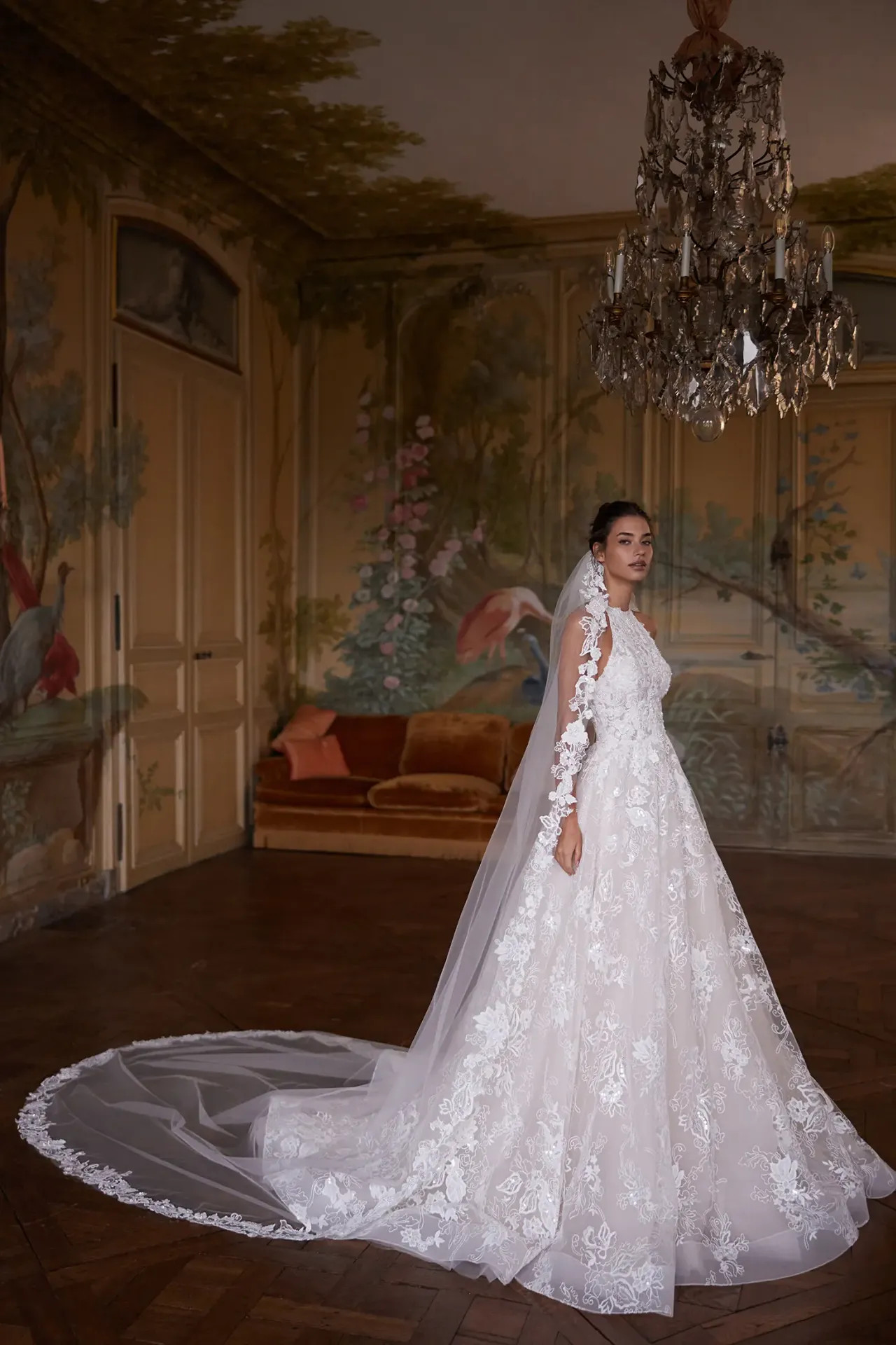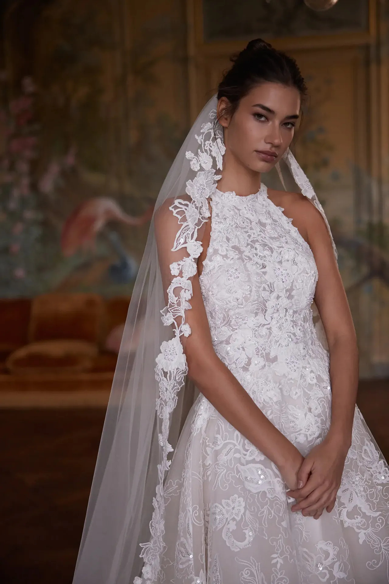 A pont az i-re: A ruhához egy hozzá illő, hatalmas fátyol is tartozik. Ugyanazok a kis virágdíszek futnak végig a szélén, így az összhatás tényleg álomszerű.