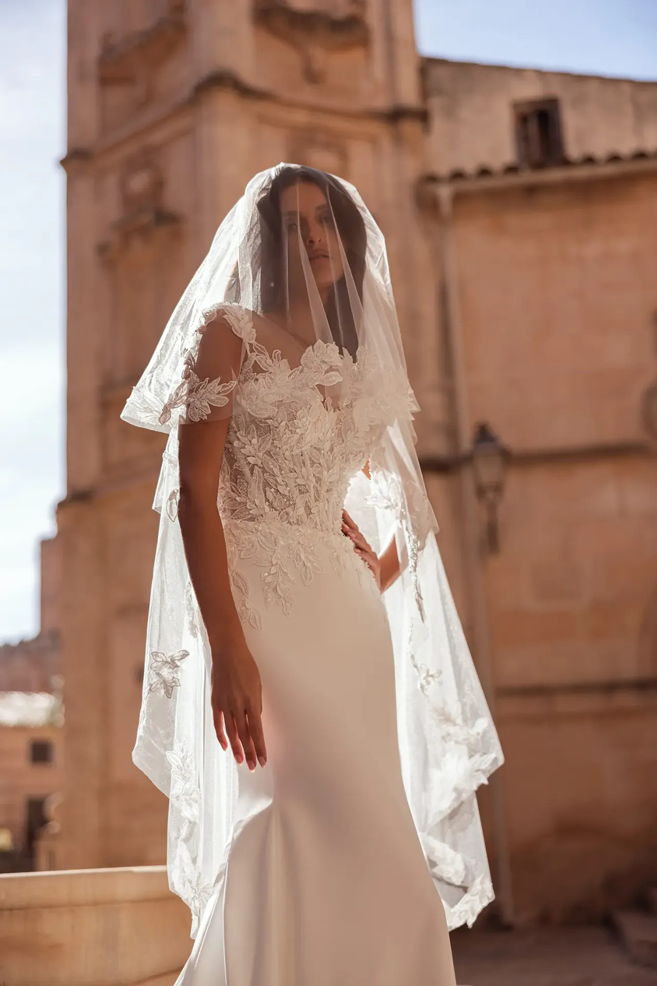 Teljes összhang: A szetthez tökéletesen passzoló fátyol gondoskodik a koronázási ceremóniához méltó befejezésről.