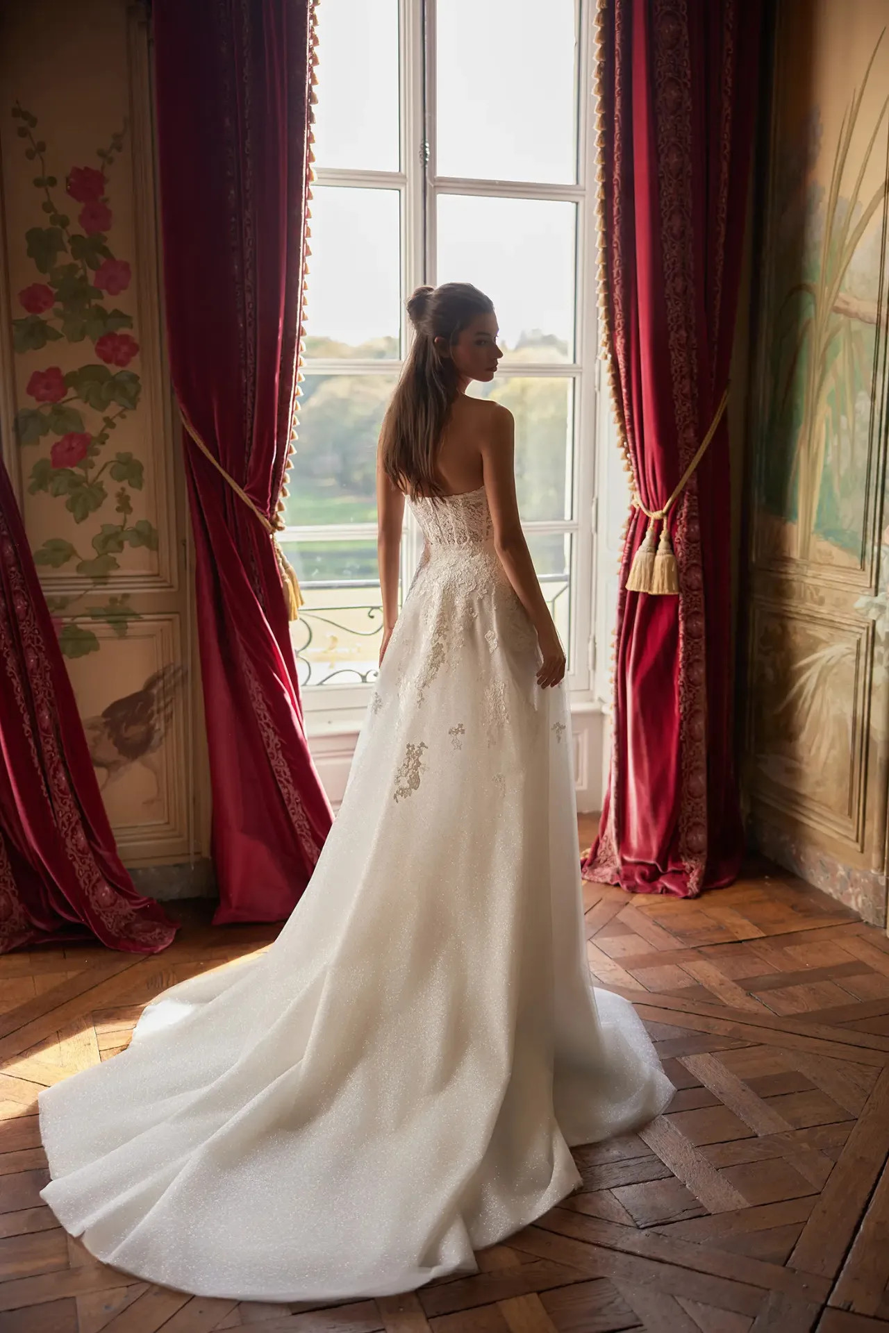 A Vienna ruha azoknak a menyasszonyoknak készült, akik szeretik hangsúlyozni nőies vonalaikat, de a szertartás alatt nem akarnak lemondani a hercegnős vonulás élményéről sem. Ez a modell a precíz fűzőtechnika és a rétegzett csillogás mesterműve.