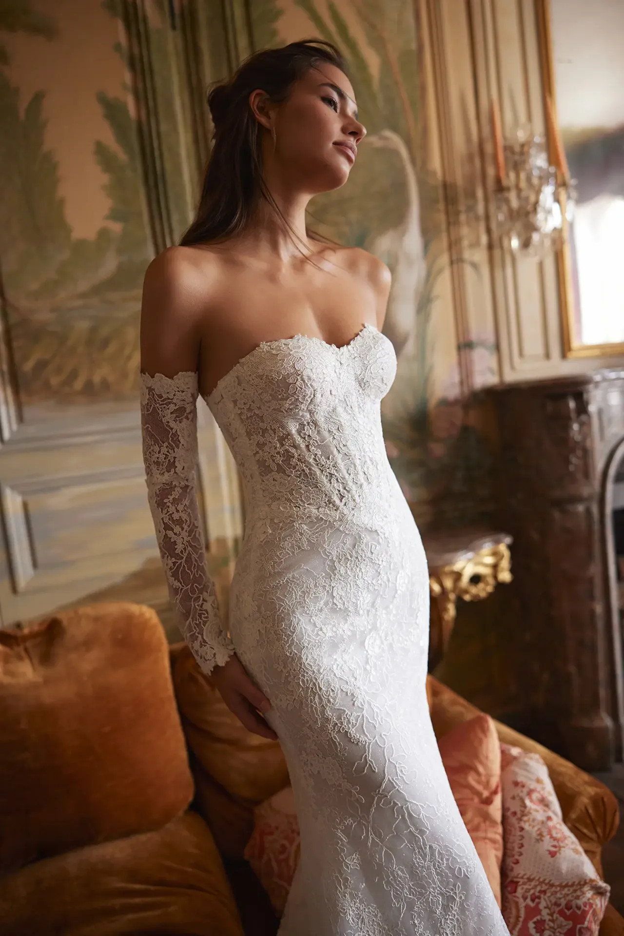 Variálható kiegészítők: Az ejtett vállú vonalvezetést lecsatolható csipkeujjak teszik teljessé, így a nap folyamán könnyedén változtathatsz a stílusodon.